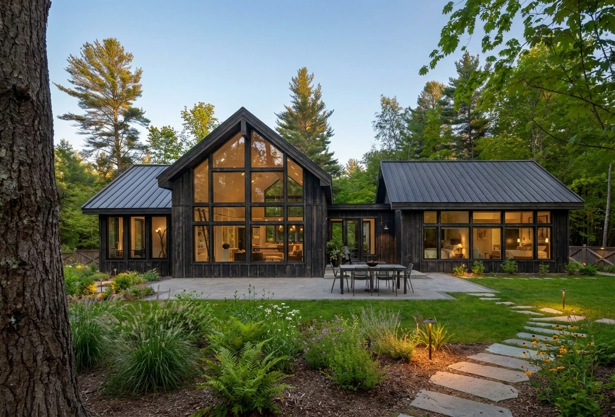 Lindal's signature feature — floor-to-ceiling windows and glass walls that flood your home with natural light and frame the surrounding landscape like living art.